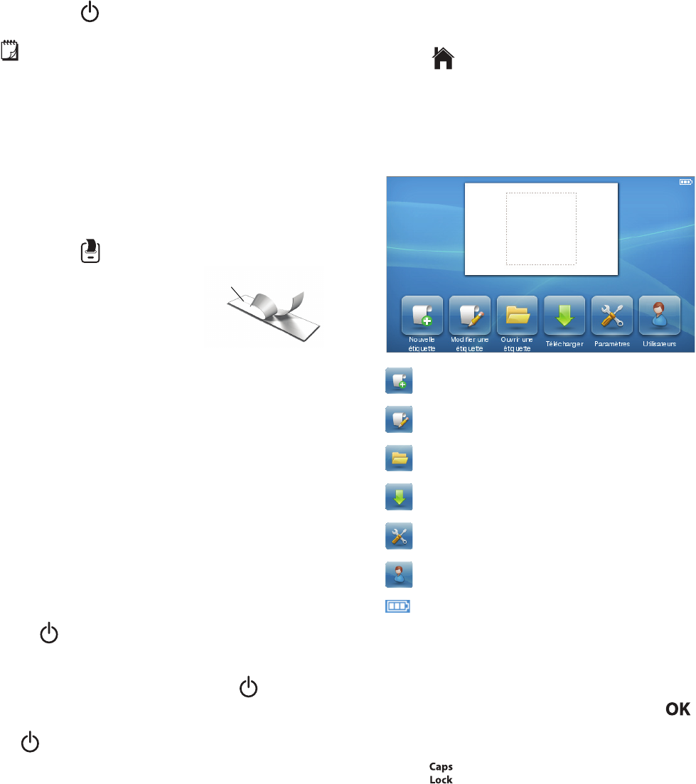 1 Appuyez sur pour mettre l’étiqueteuse sous